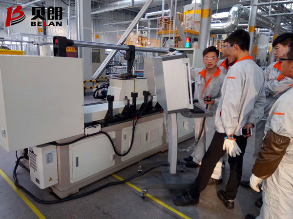 重庆富维安道拓员工学习调试双头线材折弯机BL-2T-12800