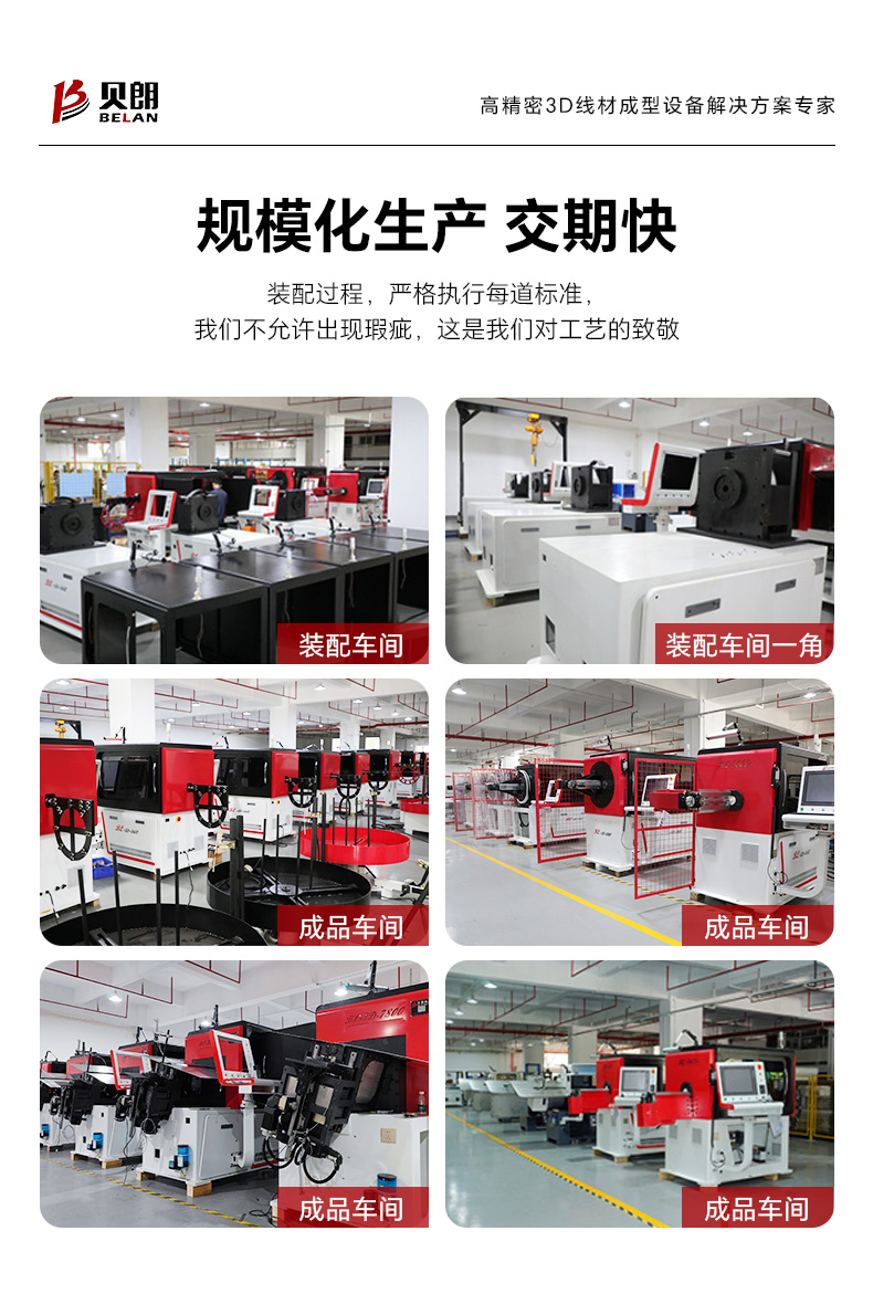产品特点:调试和切换产品更方便,无需频繁更换工装夹具,成形空间更灵活;产品通过头部旋转成型产品,可成型100-600mm长钢丝件及不对称产品(汽车发泡钢丝);头部旋转设计根据产品特定,可灵活高速旋转,提高产品生产效率。