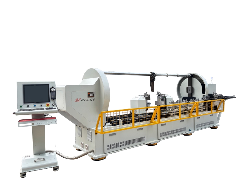 5、产品通过头部旋转成型产品,可成型100-600mm长钢丝件及不对称产品 (汽车发泡钢丝)。